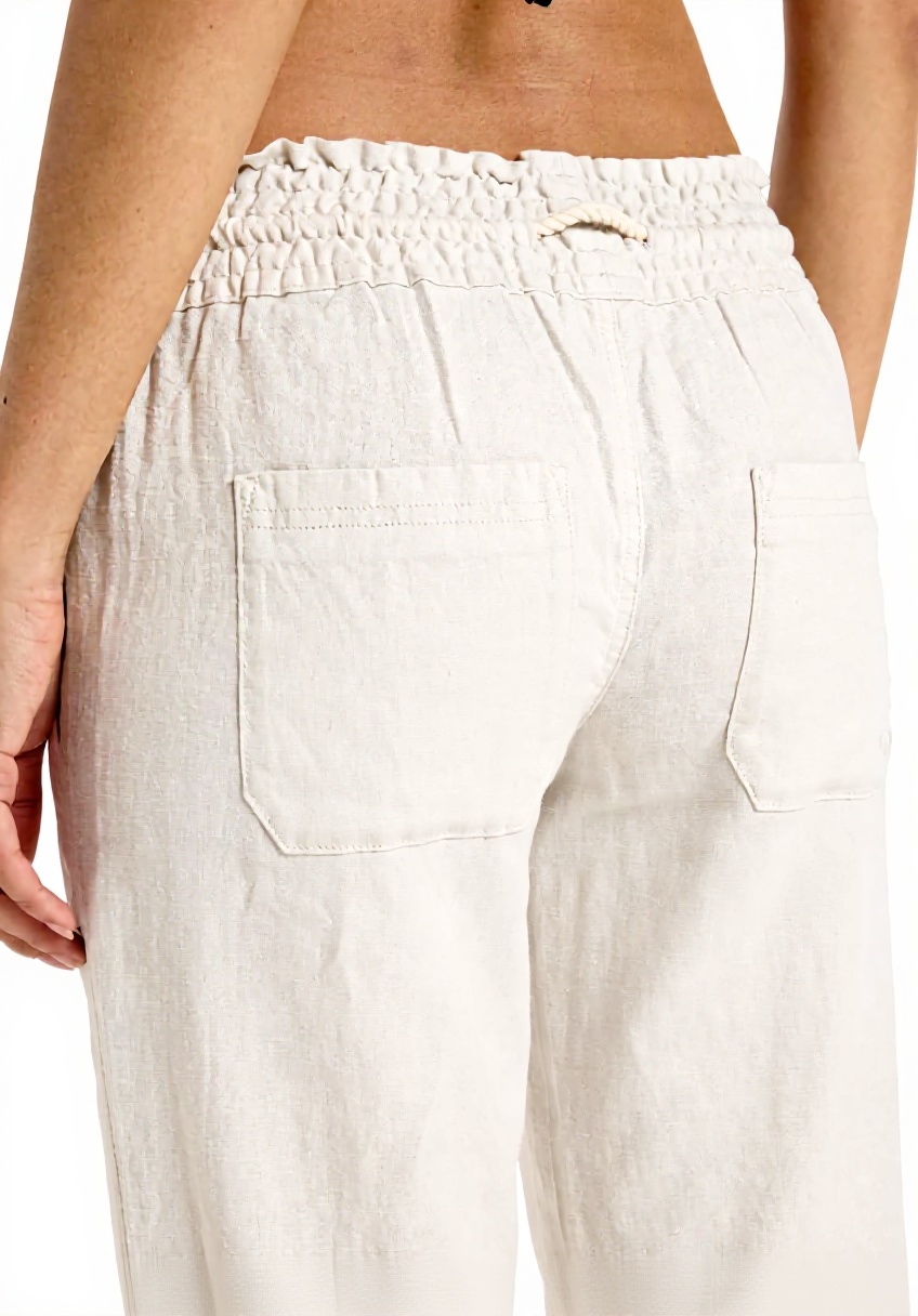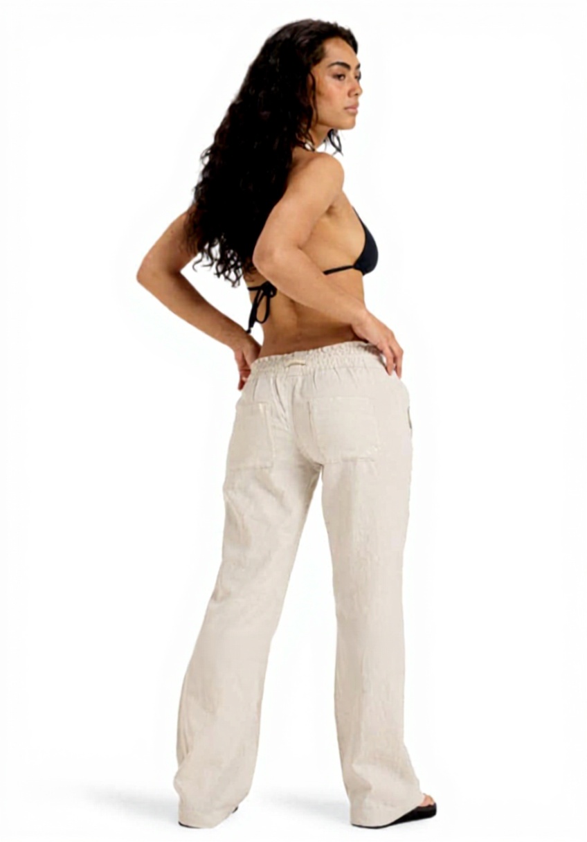 Questi pantaloni presentano un design svasato che dona un aspetto elegante e rilassato, con un tessuto in misto di lino e viscosa per una sensazione fresca e traspirante, e un logo ROXY ricamato sulla tasca posteriore per un tocco di autenticità.